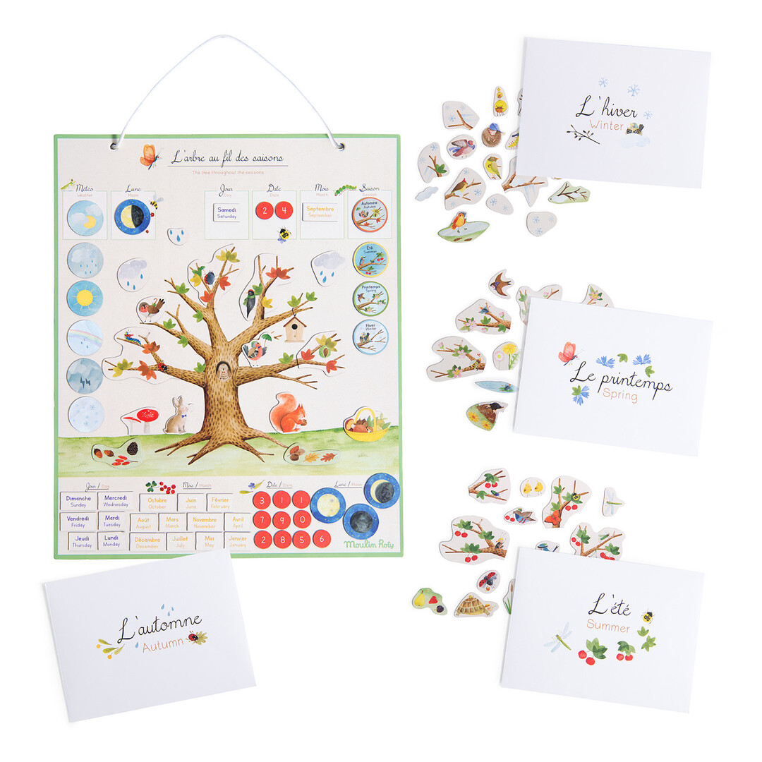 Un bel calendario di apprendimento sul tema della natura. Il tuo bambino imparerà in modo divertente: i giorni della settimana, i mesi, le stagioni, ma anche il tempo e le fasi lunari. Un calendario completo che illuminerà anche la decorazione della sua stanza!
