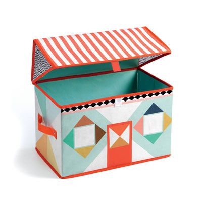 Una bella e colorata scatola porta giochi a forma di casetta che consente di contenere giochi e segreti.