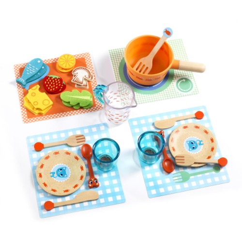 Per tutti i cuochi stellati! I più piccoli si divertiranno un mondo a cucinare con questo set di stoviglie, piatti e pentoline, lavorati in legno resistente. I coperchi rimovibili e muniti di piccoli pomelli, possono essere afferrati facilmente. La cucina dei bambini si trasformerà così in un batter d'occhio in una cucina da cuoco stellato. I più piccoli potranno inoltre allenare l'utilizzo delle posate e migliorare le loro competenze sociali. Pronti, cuochi...via!