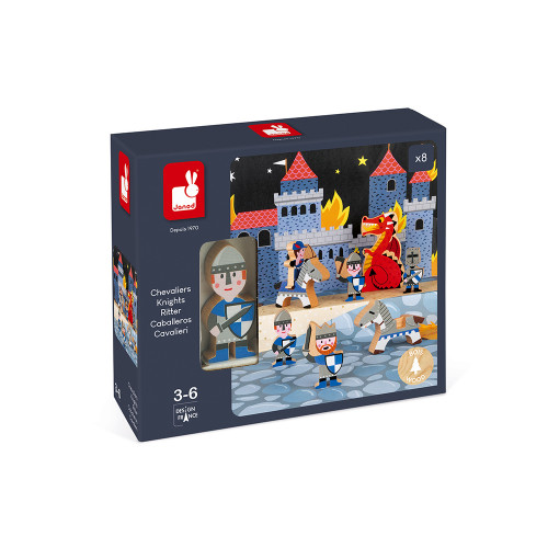 Questo bellissimo castello di legno auto-montato è dotato di 3 personaggi e 6 accessori. Contiene 1 drago, 2 personaggi, 1 scrigno del tesoro, 1 catapulta, 2 palle, 1 scala e 2 bandiere. Dimensioni 44 x 44 x 35 cm. Da 3 anni.
