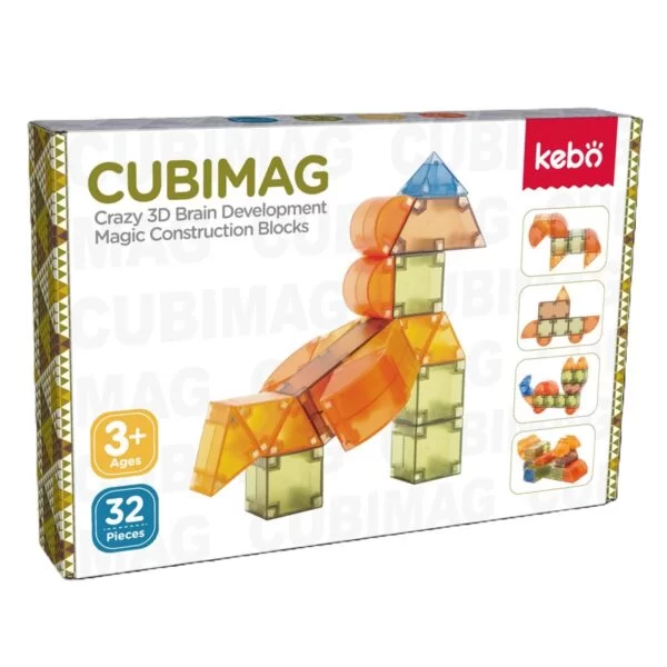 Crea figure e strutture 3D con il set Kebo Cubimag da 32 pezzi! Include blocchi magnetici trasparenti e di varie forme, ideali per esplorare la geometria e dare vita a creazioni come animali o veicoli. Ottimo per lo sviluppo STEAM, stimola pensiero spaziale e creatività. Sicuro e robusto, perfetto per bambini dai 3 anni in su.