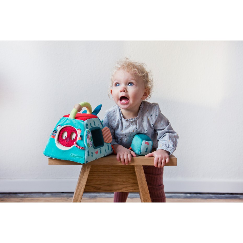 Scopri le attività e le storie di questo morbido cubo a tema giungla. L’anello di dentizione dona sollievo dalla dentizione.Stimola i sensi, le abilità fino motorie e la presa.