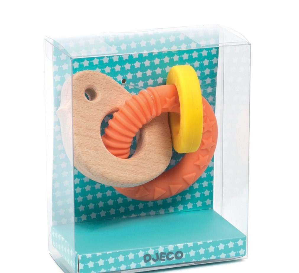 Anello per la dentizione in legno e silicone alimentare.