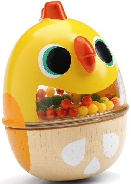 sonaglio maracas in legno di faggio e plastica a forma di pulcino.
