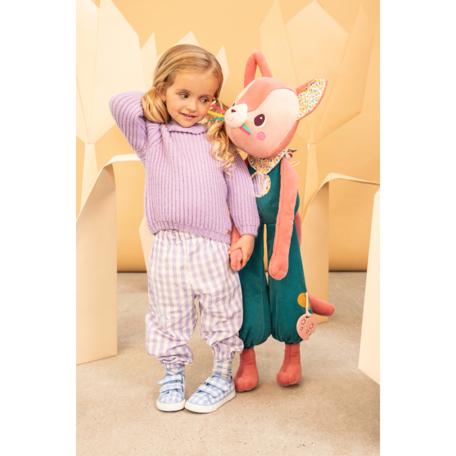 Il grande gatto Jeanne offre un'esperienza tattile avvincente con ogni carezza. Con una varietà di texture e attività, il bambino scoprirà un universo di sensazioni, stimolando così il suo sviluppo sensoriale. Tessuti morbidi, gioco popping e molte altre sorprese attendono di essere esplorate. Oltre ad essere decorativo, questo gatto confortante offre ore di gioco stimolante e rilassante.