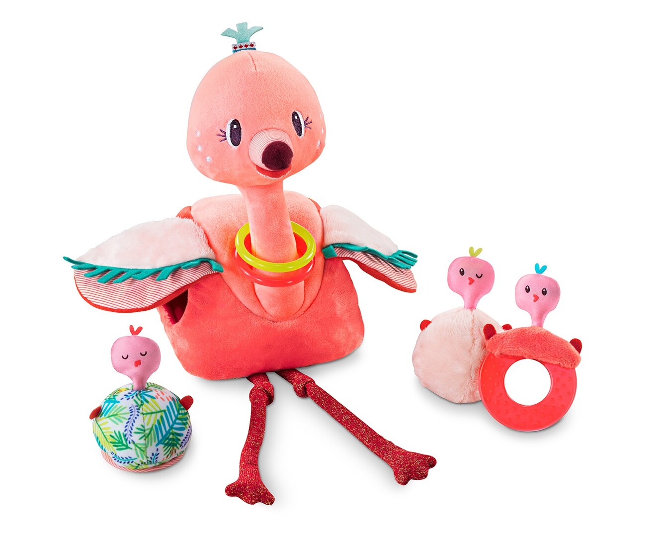 Alice si nasconde nel fogliame, proponendoti tante simpatiche attività: un pesce dorato, una simpatica civetta poti poti, una campanellina, una farfalla che fa rumore, un coniglietto con lo specchio e un anello di dentizione. Se vuoi portarla con te, si appende ovunque!