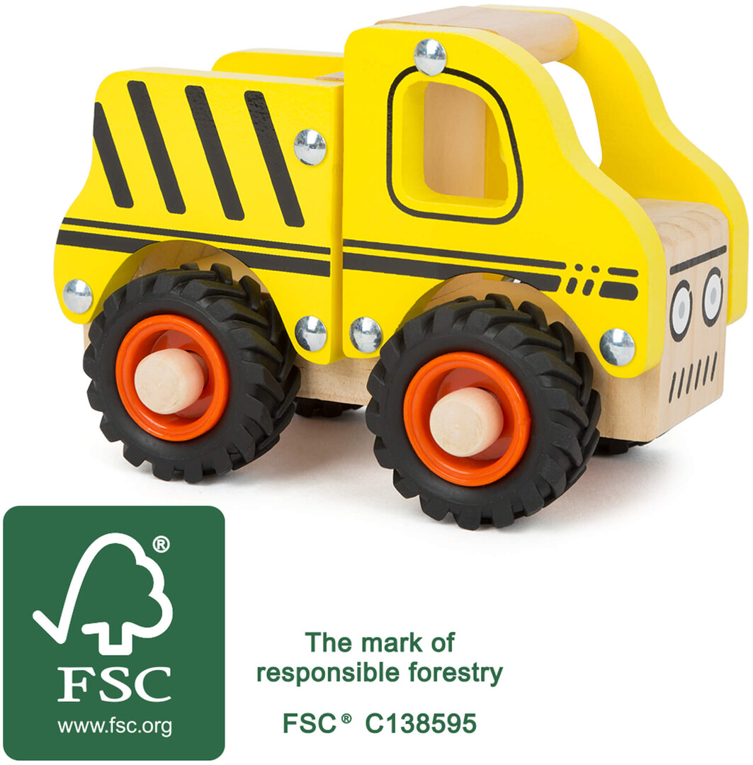 Indispensabile in ogni cantiere. Questo camion in legno massello e certificato FSC® 100% trasporta i materiali più importanti direttamente al prossimo cantiere. Grazie alle ruote gommate, con profilo adatto ad ogni tipo di terreno, circola stabile e silenzioso in cameretta. Un veicolo compatto che, una volta in mano, i bambini non vorranno più lasciare!